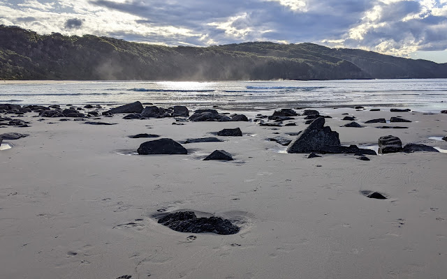 Eventually he decided to come back to Seal Rocks so he could call the SES to search for my body. The magic of modern communication occurred once we were in simultaneous contact with a phone tower and, reunited, we booked into the caravan park and went for a walk on the beach. As a bonus, Roger knew exactly what was happening locally due to having read the local paper from front to back several times over while he waited in the wilderness for a wife who was never going to arrive.