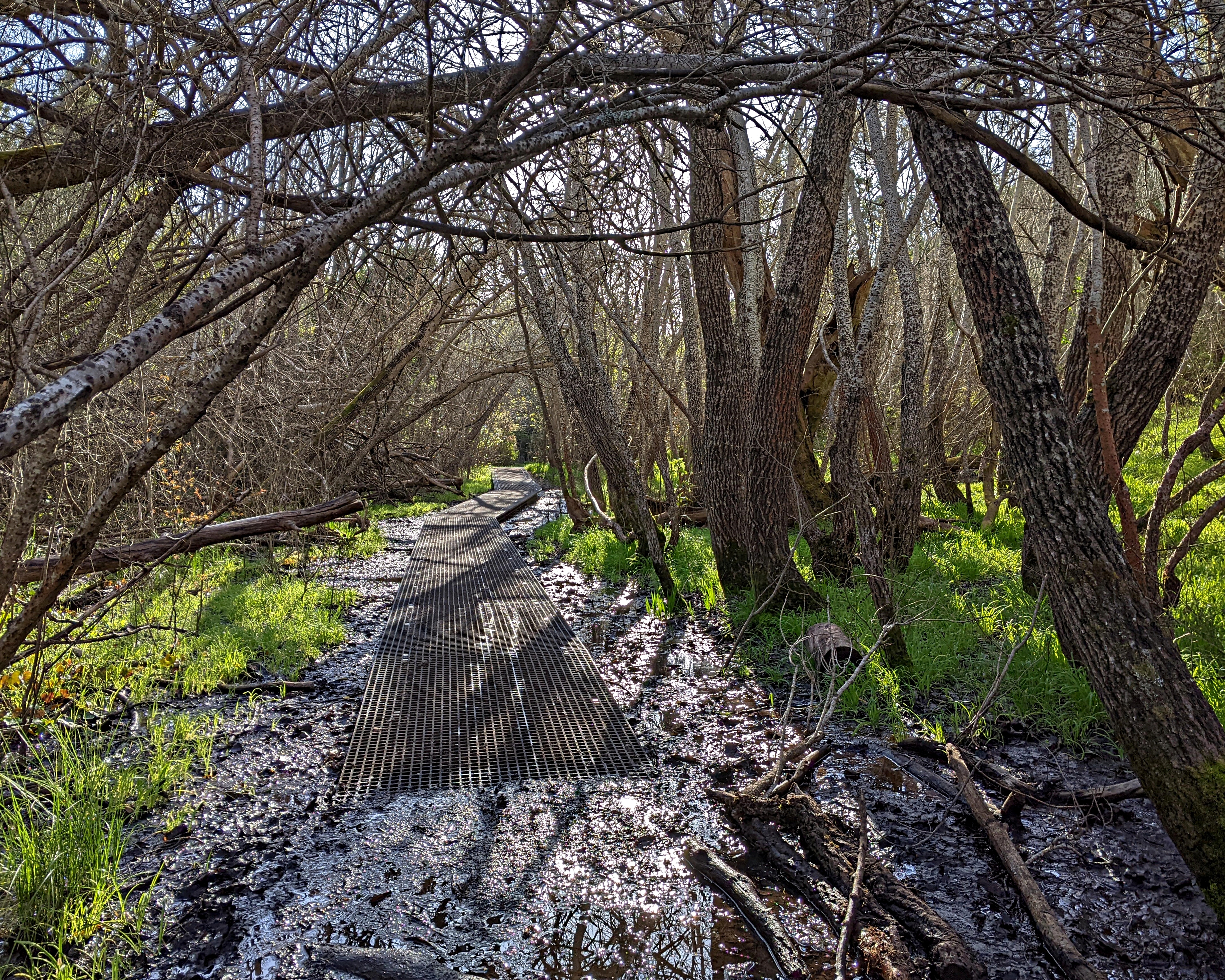 | No drunkeness or debauchery here: just winter mud and trees about to come into leaf. |