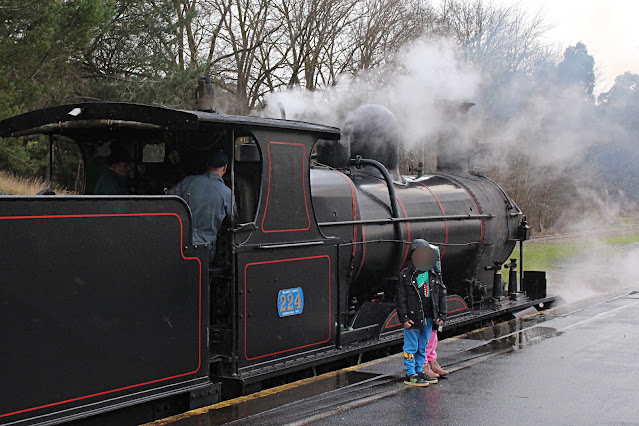 The train was late returning from its morning trip to Strath, and blame was placed squarely on the miserable weather which had scattered branches across the track and necessitated regular stops to allow someone to wield a chainsaw.